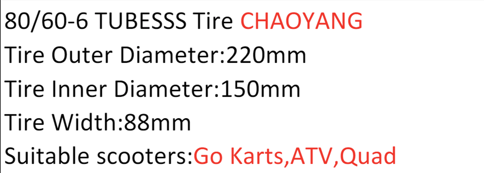 80/60-6 tubeless tire